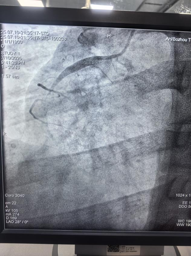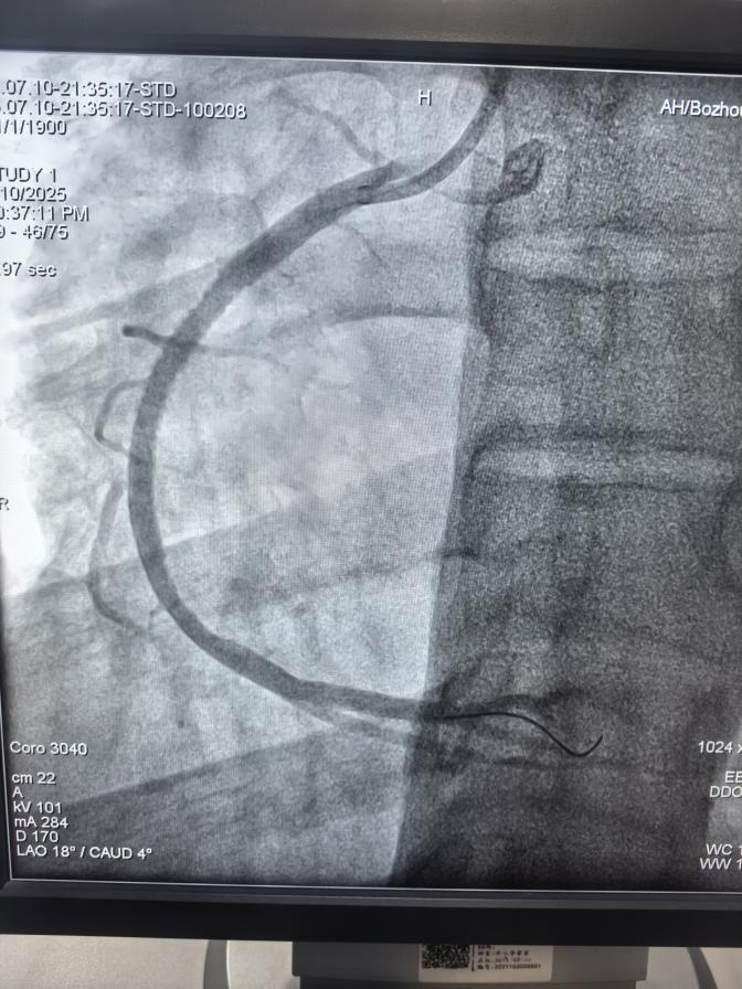 患者馮先生身高170cm,體重95kg,體型較為肥胖,平時作息不規(guī)律,長期抽煙、飲酒、熬夜,當天突發(fā)心前區(qū)疼痛持續(xù)不能緩解,伴有大汗淋漓、煩躁不安,通過呼叫120救護車送至我院胸痛中心。心血管病科二病區(qū)介入醫(yī)生給他做了急診冠脈造影檢查,顯示右冠狀動脈近段急性完全閉塞。經(jīng)過手術(shù)醫(yī)生積極有序的救治,順利開通閉塞血管后,在血管內(nèi)超聲指引下精確植入一枚藥物洗脫支架,植入后血流恢復(fù)良好,馮先生癥狀明顯改善,生命體征逐漸平穩(wěn)。術(shù)后身體恢復(fù)良好,于7月20日順利出院。