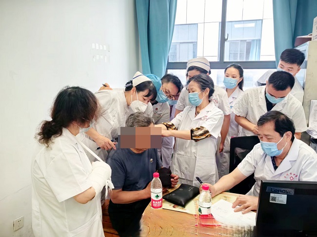 6月26日,全國(guó)名中醫(yī)楊駿教授及張慶萍教授來(lái)我院針推科坐診、帶教,工作室成員及針推科醫(yī)護(hù)人員跟診學(xué)習(xí)。