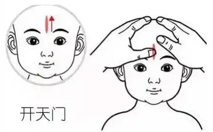 ④開天門:兩眉中間至前發(fā)際成一直線,用雙手拇指自下而上交替推,30次。能夠疏風(fēng)解表,緩解鼻癢。